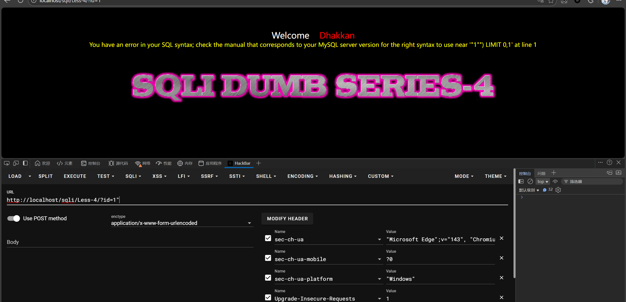 看报错判断是数字型注入,这里的报错是无法显示数据,说明是语法错误,多了个’