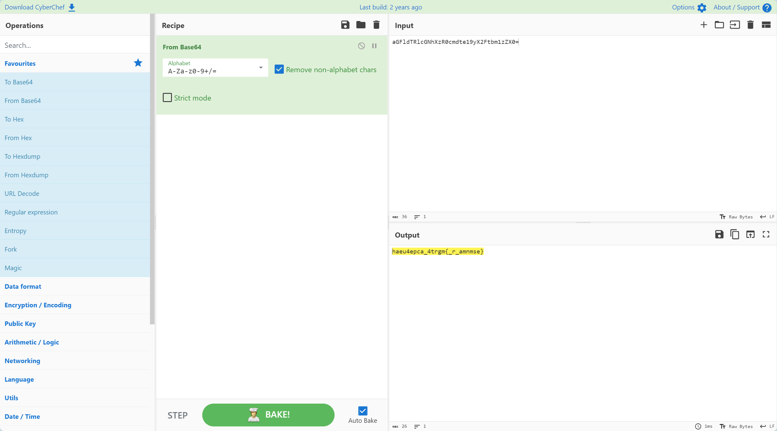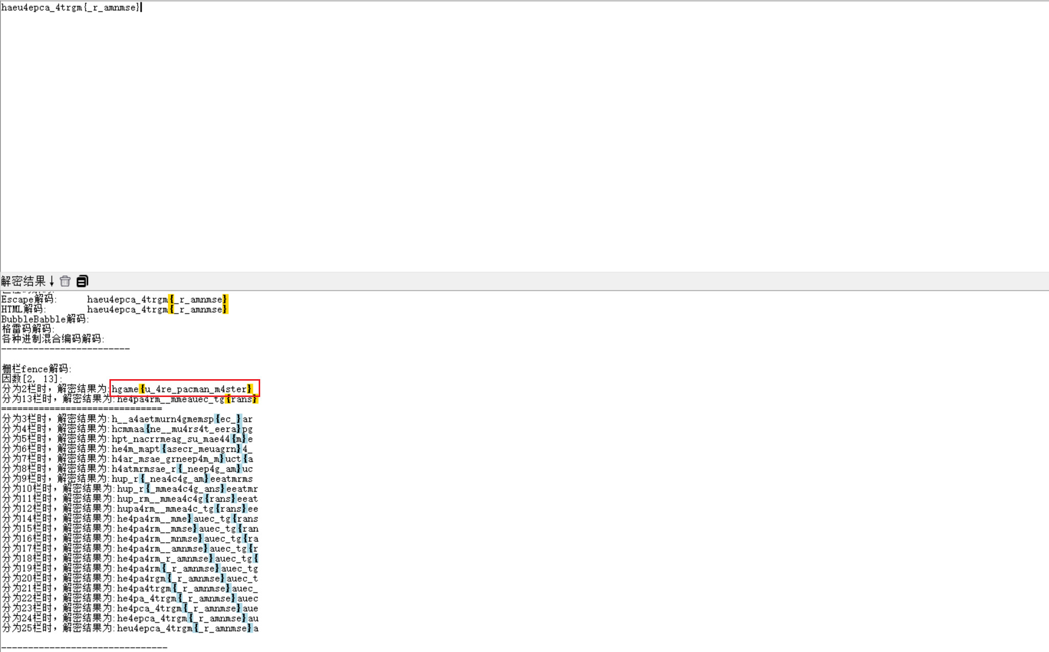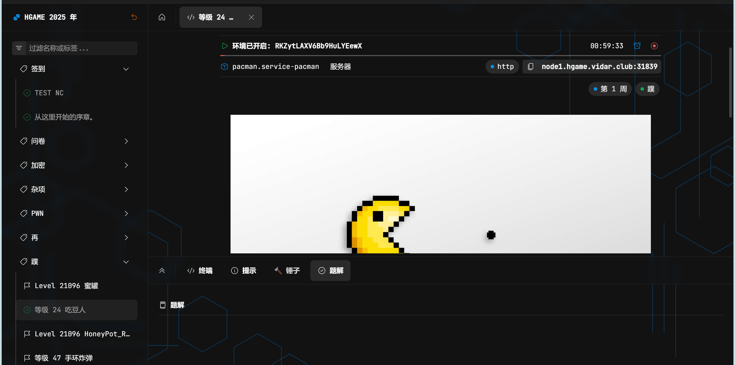 hgame2025赛后复现 发表于 2025-03-03 更新于 2025-12-26 web吃豆人一个吃豆子的小游戏,比赛的时候看到要求要吃到一万分五条命,没吃到,当时死了出现了base64交的不对,就不管了跟着赛后官方wp复现,看到index.php里面的有两串可疑的字符第一个是错的,第二个先放到cyberchef里面解一下,是base64猜测是凯撒或者栅栏,随波逐流梭出来flag 签到 阅读全文 »